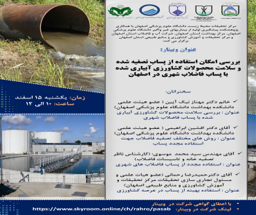 وبینار بررسی امکان استفاده از پساب تصفیه شده و سلامت محصولات کشاورزی آبیاری شده با پساب فاضلاب شهری در اصفهان