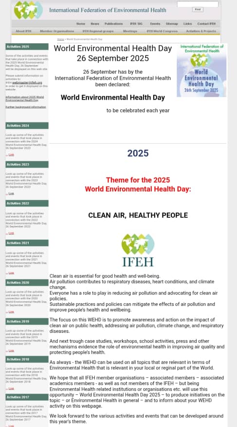 روز بهداشت جهانی مبارک روز جهانی بهداشت محیط در ۲۶ سپتامبر برابر با ۴ مهرماه هر سال به مناسبت روزی اختصاص داده شده به ایجاد آگاهی در مورد تأثیر بهداشت محیط بر زندگی انسان ها برگزار می شود.